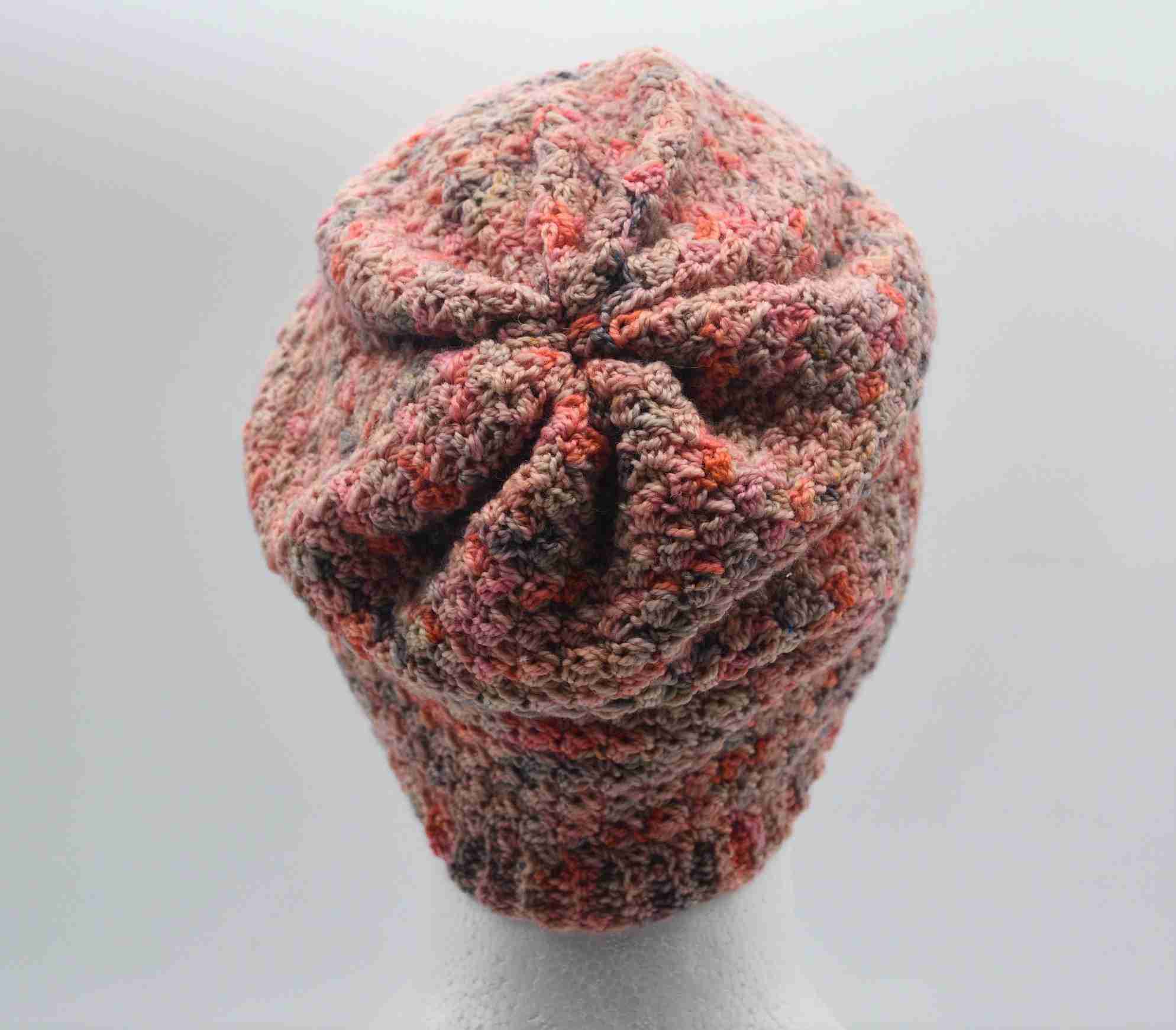 Using one off hand dyed wool blend yarn this slouchy beanie is the fun piece for your wardrobe